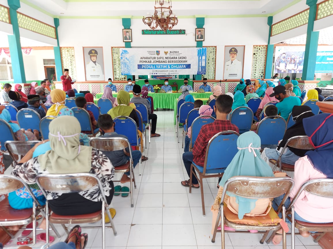 Adapun yang menerima bantuan adalah fakir miskin sejumlah 70 orang @ 5 kg beras,50 anak yatim menerima @.Rp.200.000,00 dan alat tulis sekolah,yang di serahkan secara langsung oleh Tim ASN dari Pemerintahan Kabupaten Jombang dan Camat Ngusikan.