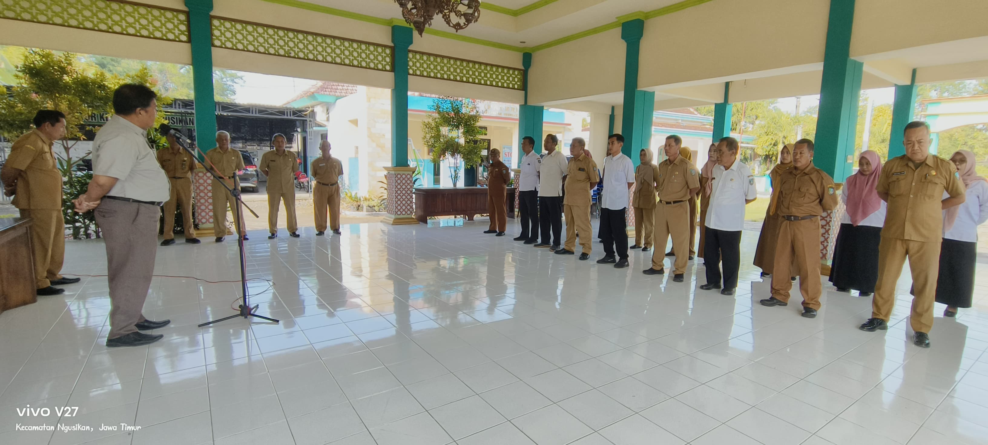JOMBANGKAB,NGUSIKAN,- Pada hari senin tanggal13 januari 2025 di Pendopo kecamatan Ngusikan telah di laksanakan kegiatan rutin yaitu apel pagi, adapun apel pagi pada hari senin ini di pimpin langsung oleh Bapak Camat Ngusikan dan di ikuti oleh seluruh jajaran pegawai di lingkup kecamatan Ngusikan.