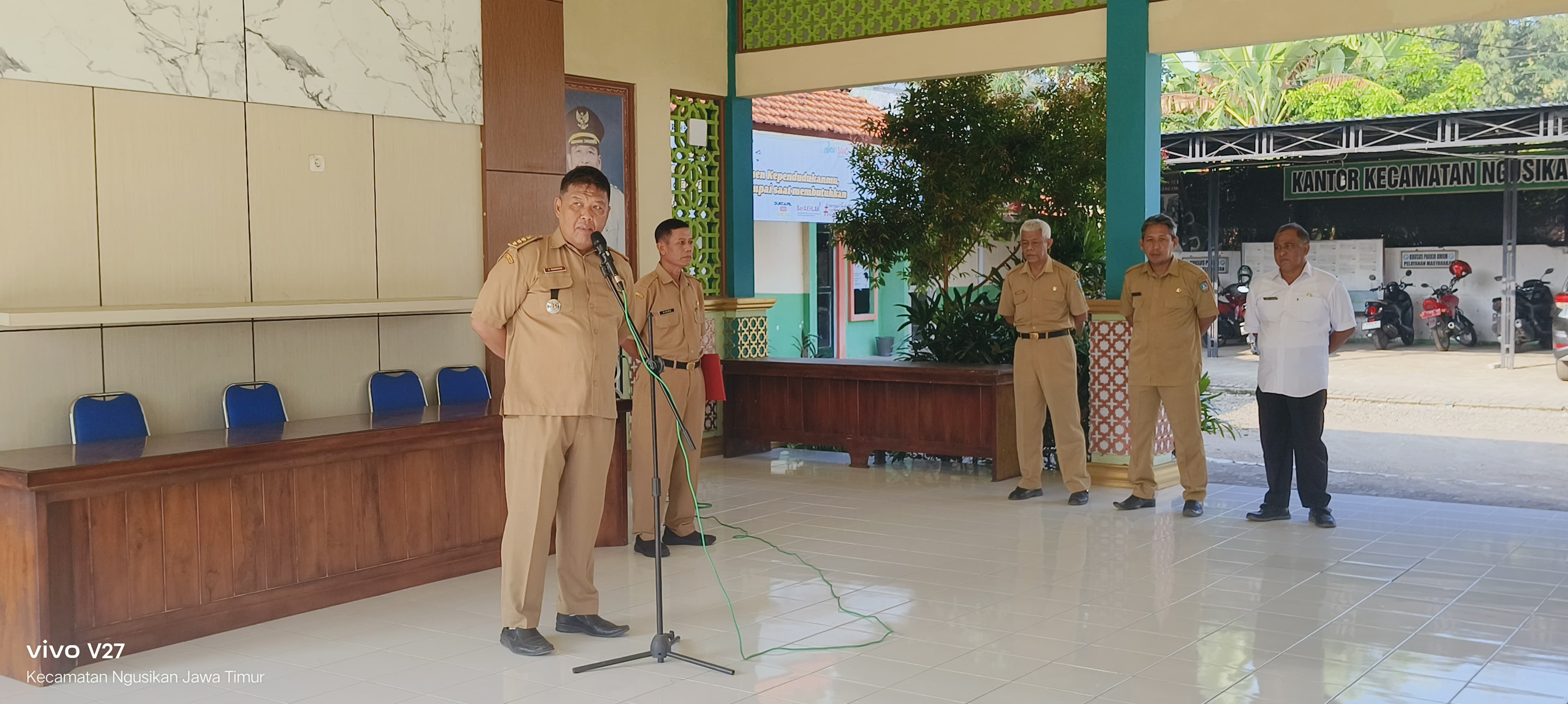 Amanat dari apel pagi yang di berikan oleh bapak Camat adalah di tingkatkannya rasa kedisiplinan dan pelayanan terhadap masyarakat dan di mohon untuk para kasi agar berkunjung ke Desa-Desa untuk melaksanakan kegiatan Masalah Pajak Bumi dan Bangunan ( PBB ) yang ada di Desa di wilayah kecamatan Ngusikan.