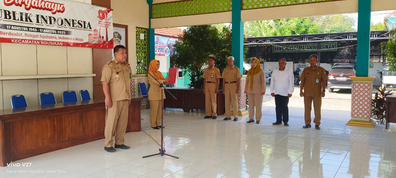 JOMBANGKAB,NGUSIKAN,- Pada hari senin tanggal 09 september 2025 pukul.07.30 WIB di Pendopo Kecamatan Ngusikan telah di laksanakan kegiatan rutin yaitu apel pagi, adapun apel pagi pada hari ini di pimpin langsung oleh Bapak Camat Ngusikan dan di ikuti oleh seluruh ASN dan pegawai Non ASN di lingkup kecamatan Ngusikan .