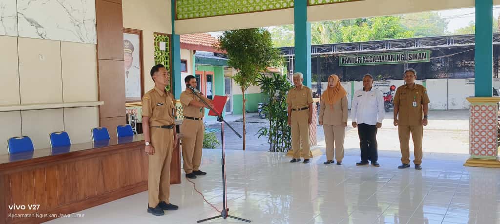 Kegiatan apel pagi ini berjalan dengan tertib dan lancar, serta menjadi momentum untuk memperkuat semangat kebersamaan dan tanggung jawab dalam menjalankan tugas pemerintahan di Kecamatan Ngusikan.