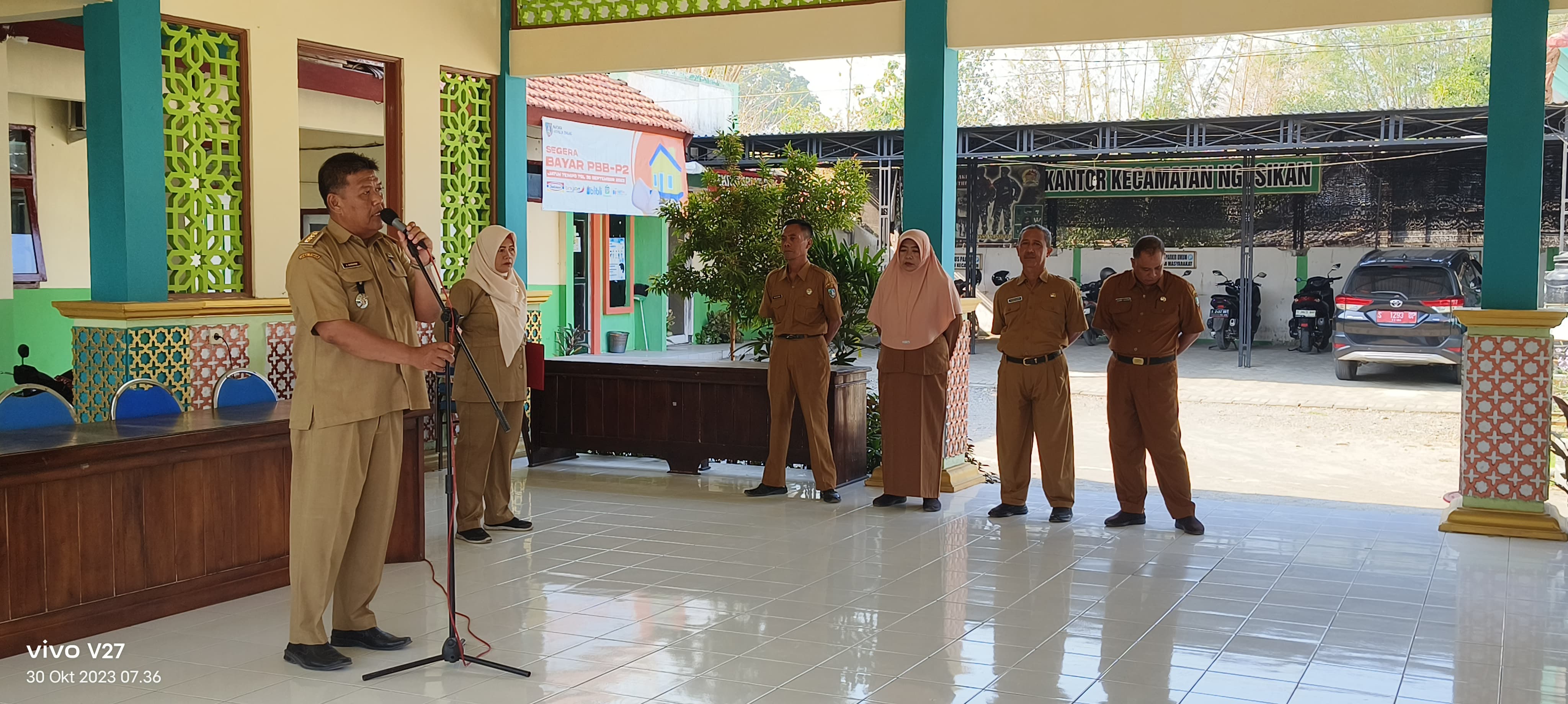 Adapun Apel pagi yang di pimpin langsung oleh Camat Ngusikan dan di ikuti oleh seluruh Pegawai di Lingkup kantor Kecamatan Ngusikan.