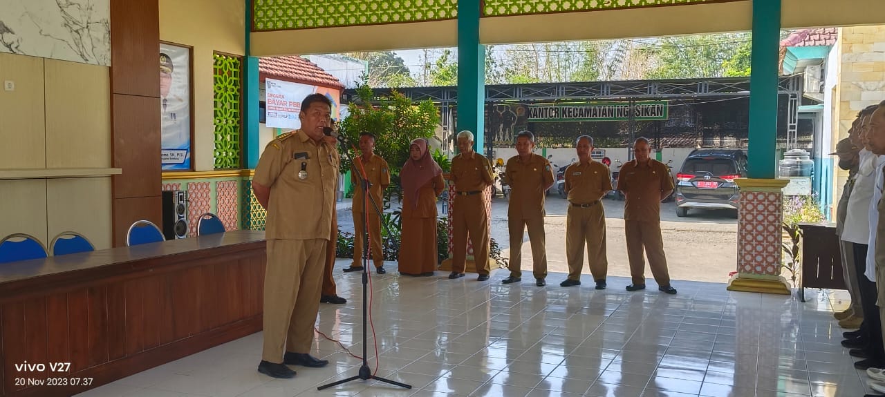 JOMBANGKAB,NGUSIKAN- Pda hari senin tanggal 20 nopember 2023 di pendopo kecamatan Ngusikan telah di laksanakan kegiatan rutin yaitu apel pagi