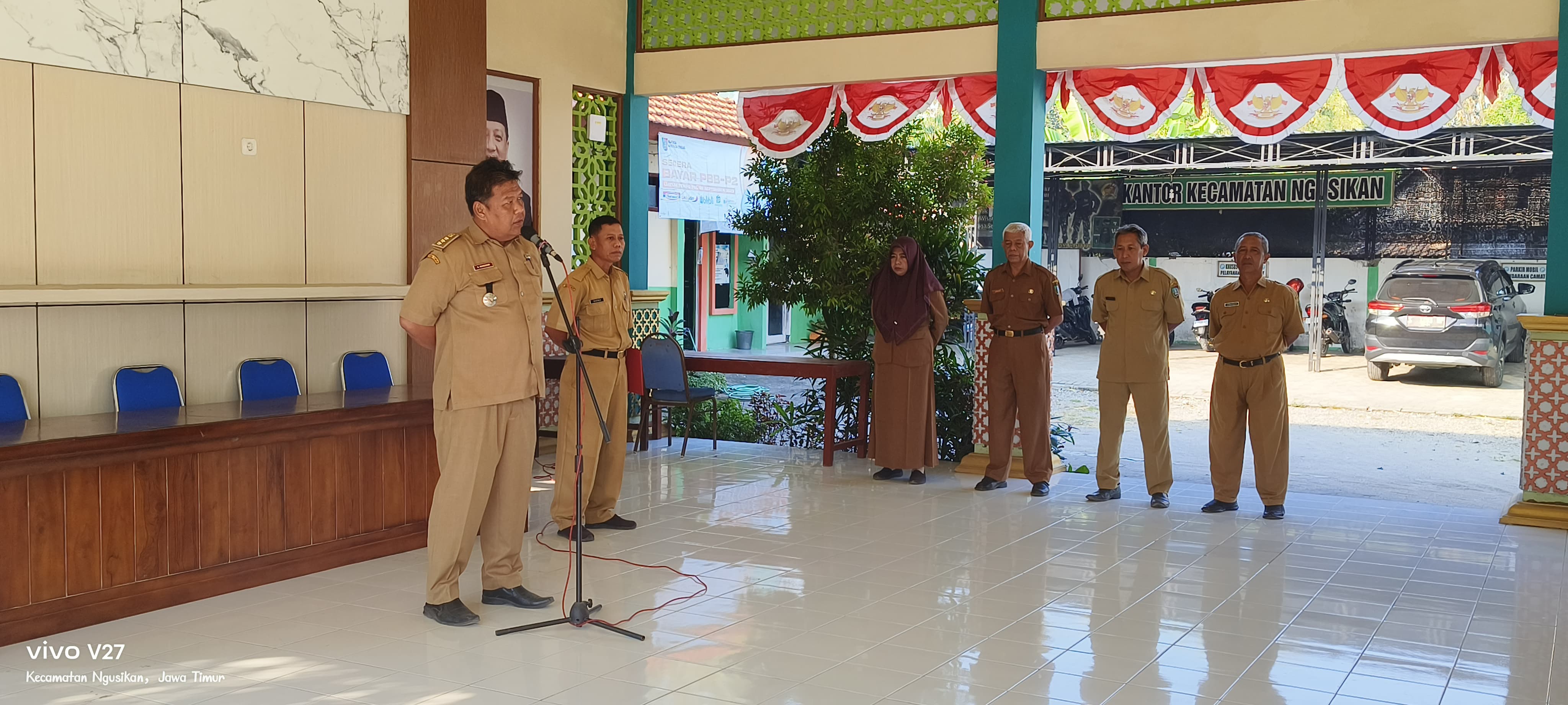 JOMBANGKAB,NGUSIKAN- Pada hari senin tanggal 29 Juli 2024 pukul.07.30 WIB, di Pendopo Kecamatan Ngusikan telah di laksanakan kegiatan apel pagi, adapun apel pagi hari senin di pimpin langsung oleh Camat Ngusikan dan di ikuti oleh seluruh Pegawai di lingkup Kecamatan Ngusikan.