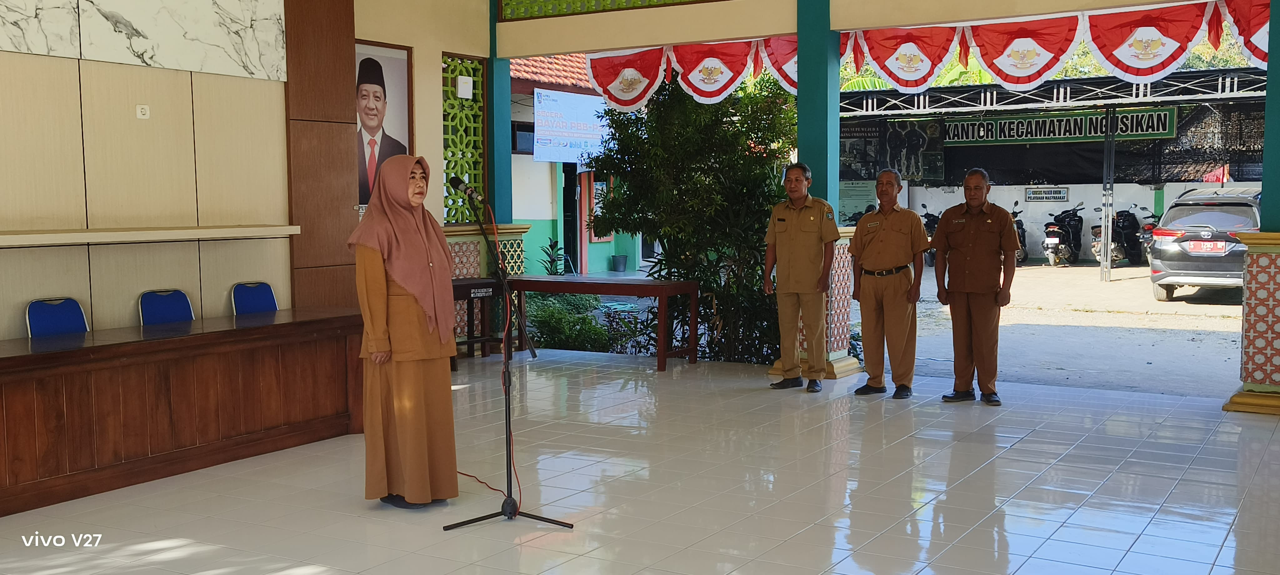 JOMBANGKAB,NGUSIKAN- Pada hari selasa tanggal 30 Juli 2024 di Pendopo kecamatan Ngusikan telah di laksanakan kegiatan rutin yaitu apel pagi, adapun apel pagi pada hari selasa di pimpin langsung oleh Kasi PMD kecamatan Ngusikan dan di ikuti oleh seluruh Pegawai di lingkup kantor kecamatan Ngusikan.