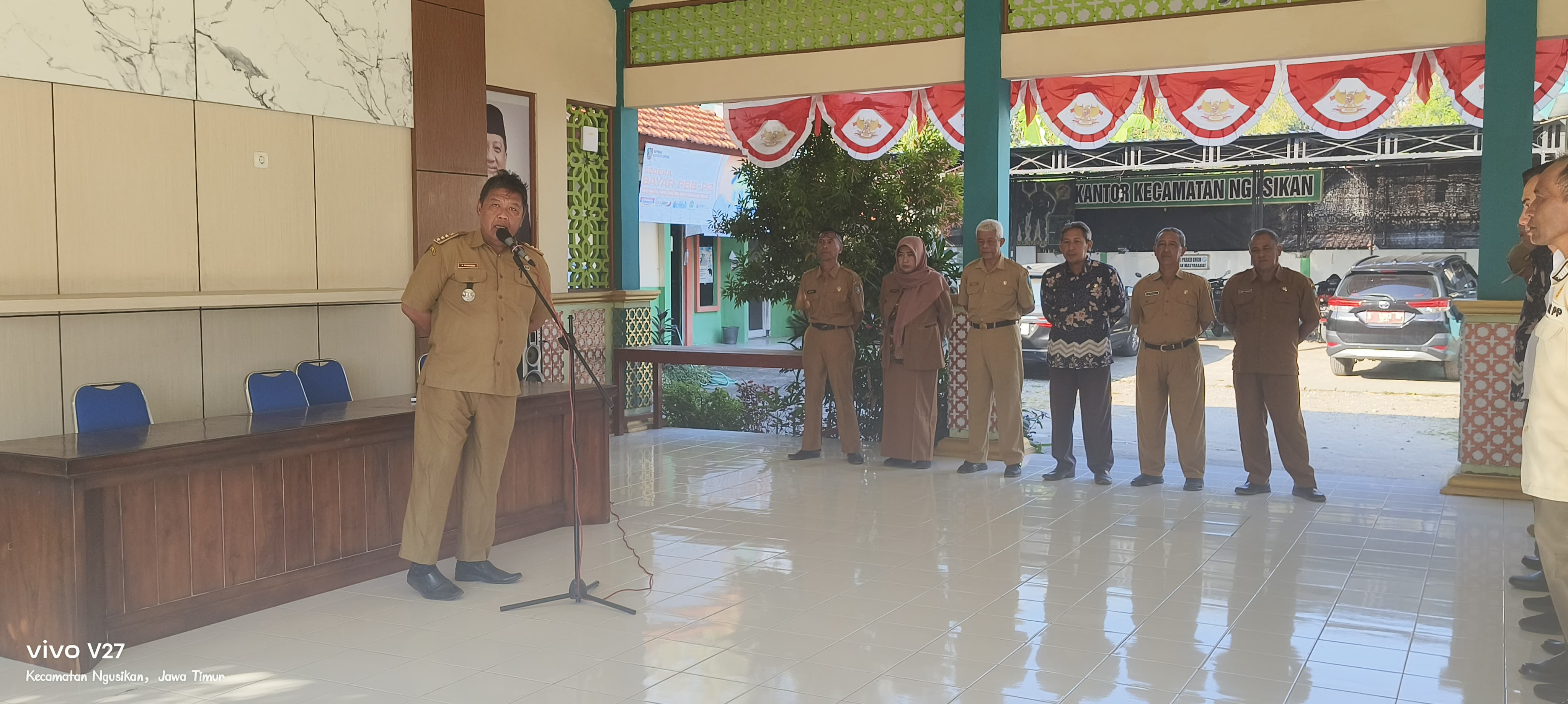 JOMBANGKAB,NGUSIKAN- Pada hari selasa tanggal 6 agustus 2024 di Pendopo Kecamatan Ngusikan telah di laksanakan kegiatan rutin yaitu apel pagi, adapun apel pagi pada hari selasa di pimpin langsung oleh Camat Ngusikan dan di ikuti oleh seluruh jajaran pegawai di lingkup kecamatan Ngusikan.