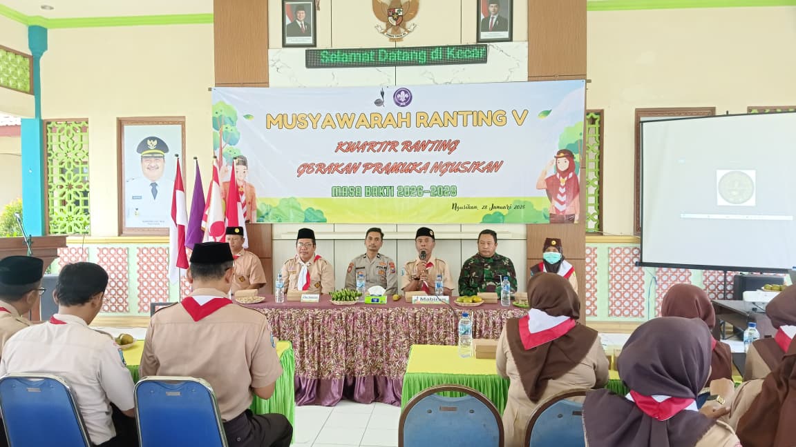 JOMBANGKAB,NGUSIKAN,- Ngusikan – Pengurus Kwartir Ranting Gerakan Pramuka Kecamatan Ngusikan masa bakti 2026–2029 resmi dilantik dalam sebuah acara yang berlangsung khidmat di Pendopo Kecamatan Ngusikan. Pelantikan tersebut dilaksanakan oleh Bapak Sekretaris Daerah Kabupaten Jombang.