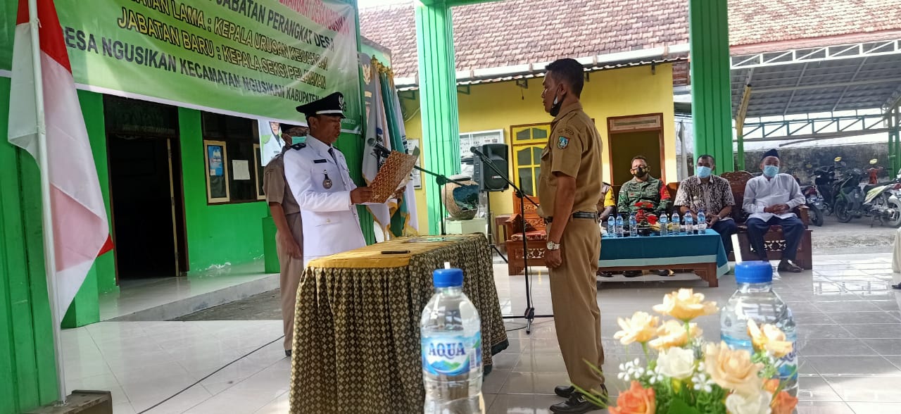 Pada hari selasa tanggal 3 Nopember 2020 di Pendopo Kantor Desa Ngusikan Kecamatan Ngusikan Kabupaten Jombang telah di laksanakan acara Pelantikan Perangkat Desa dari Kaur Keuangan Menjadi Kasi Pelayanan ( Bpk.Azamul Ubaidillah).