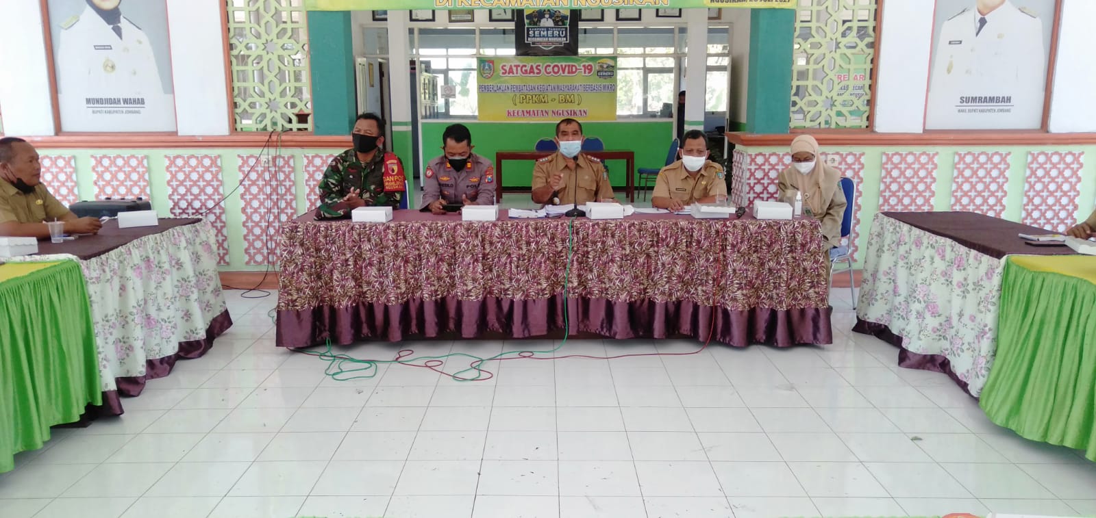JOMBANGKAB,NGUSIKAN- Pada hari senin (26/07//2021) telah di laksanakan rapat Koordinasi PPKM di Pendopo Kantor Kecamatan Ngusikan yang di hadiri oleh Camat Ngusikan ,Kapolsek Ngusikan, Koramil Ngusikan, Kepala Puskesmas Ngusikan, dan di ikuti oleh seluruh Kepala Desa sekecamatan Ngusikan.
