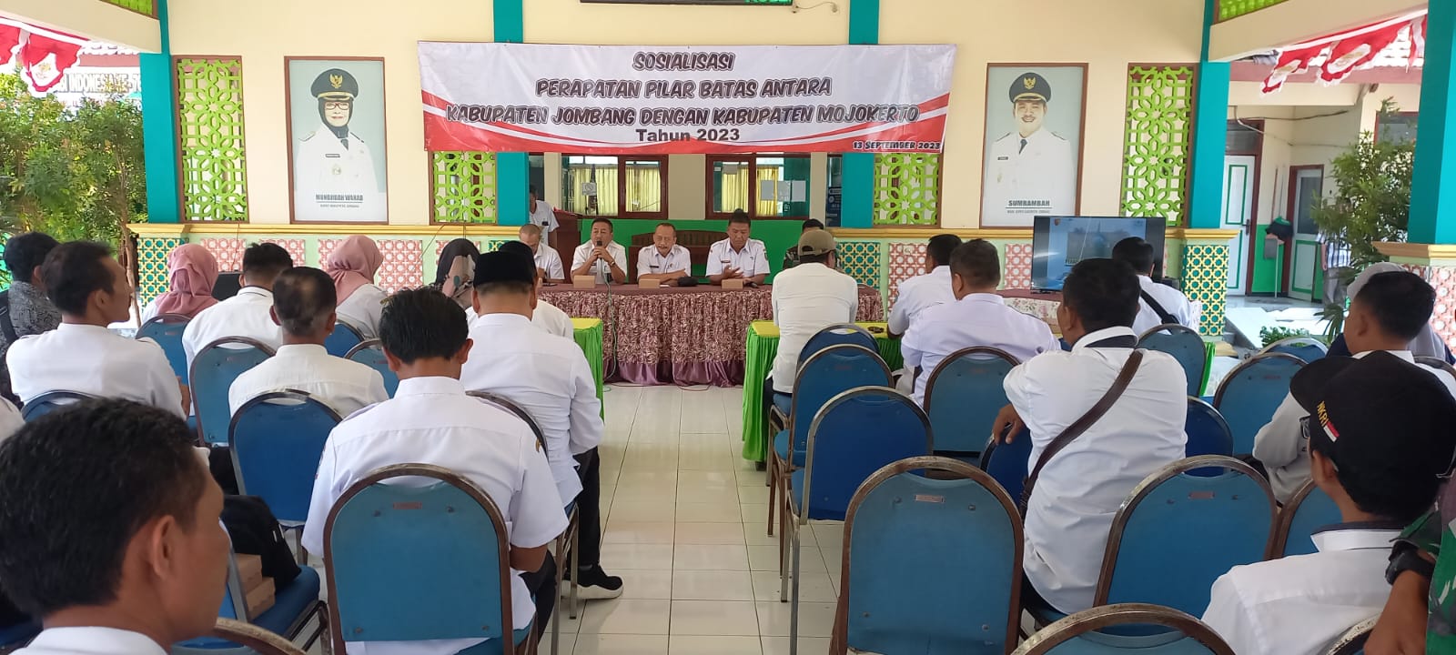 JOMBANGKAB,NGUSIKAN- Pada hari rabu tanggal 13 September 2023 di Pendopo Kecamatan Ngusikan telah di laksanakan kegiatan Sosialisasi Perapatan Pilar Batas antara Kabupaten Mojokerto dengan Kabupaten Jombang yang di hadiri dari team Kabupaten Jombang dan dari Kabupaten Mojokerto,Seluruh Kepala Desa sekecamatan ngusikan, dan Kepala Dusun Sekecamatan Ngusikan .